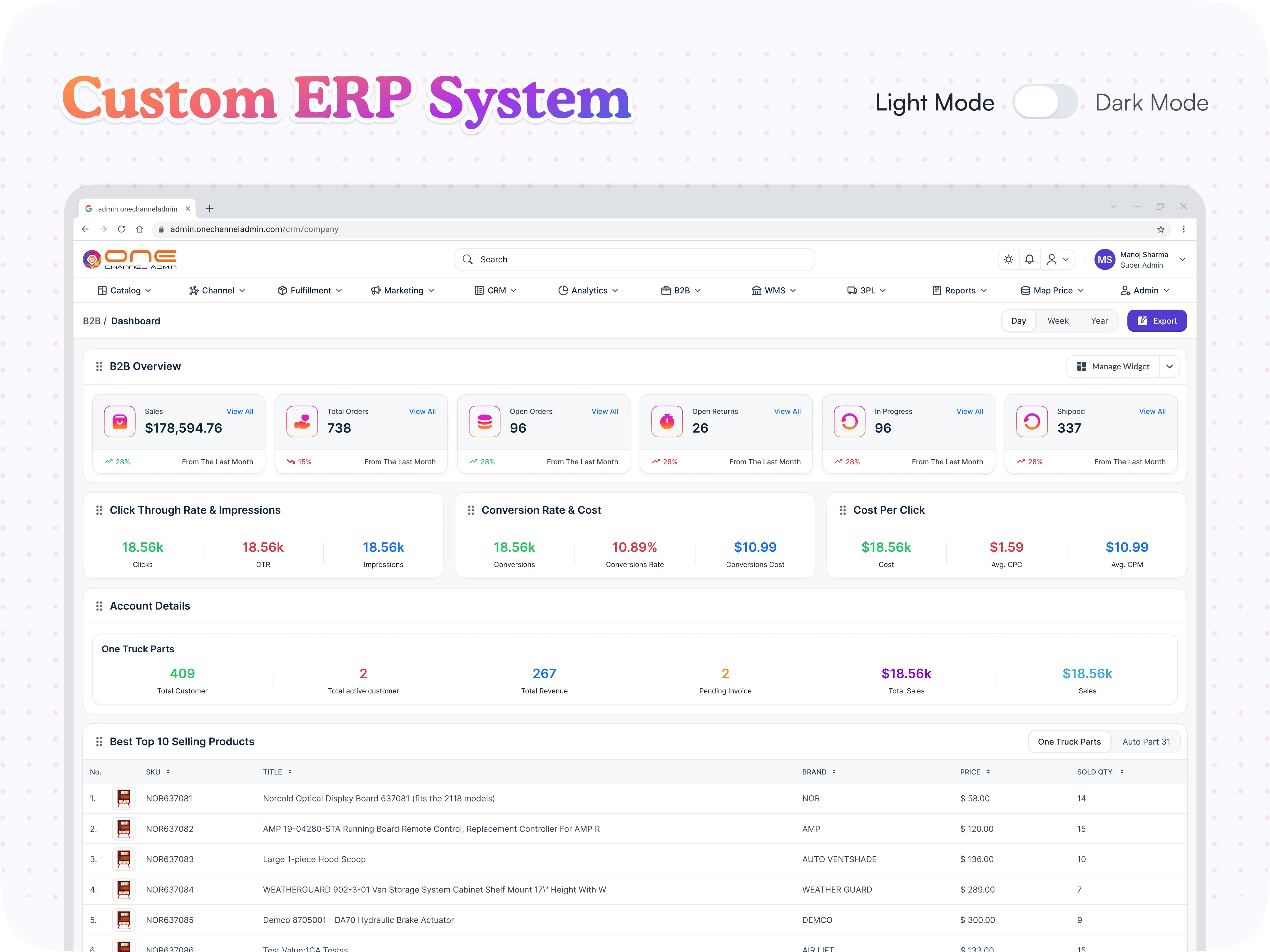 A dedicated website and ERP for One Fulfill Center
