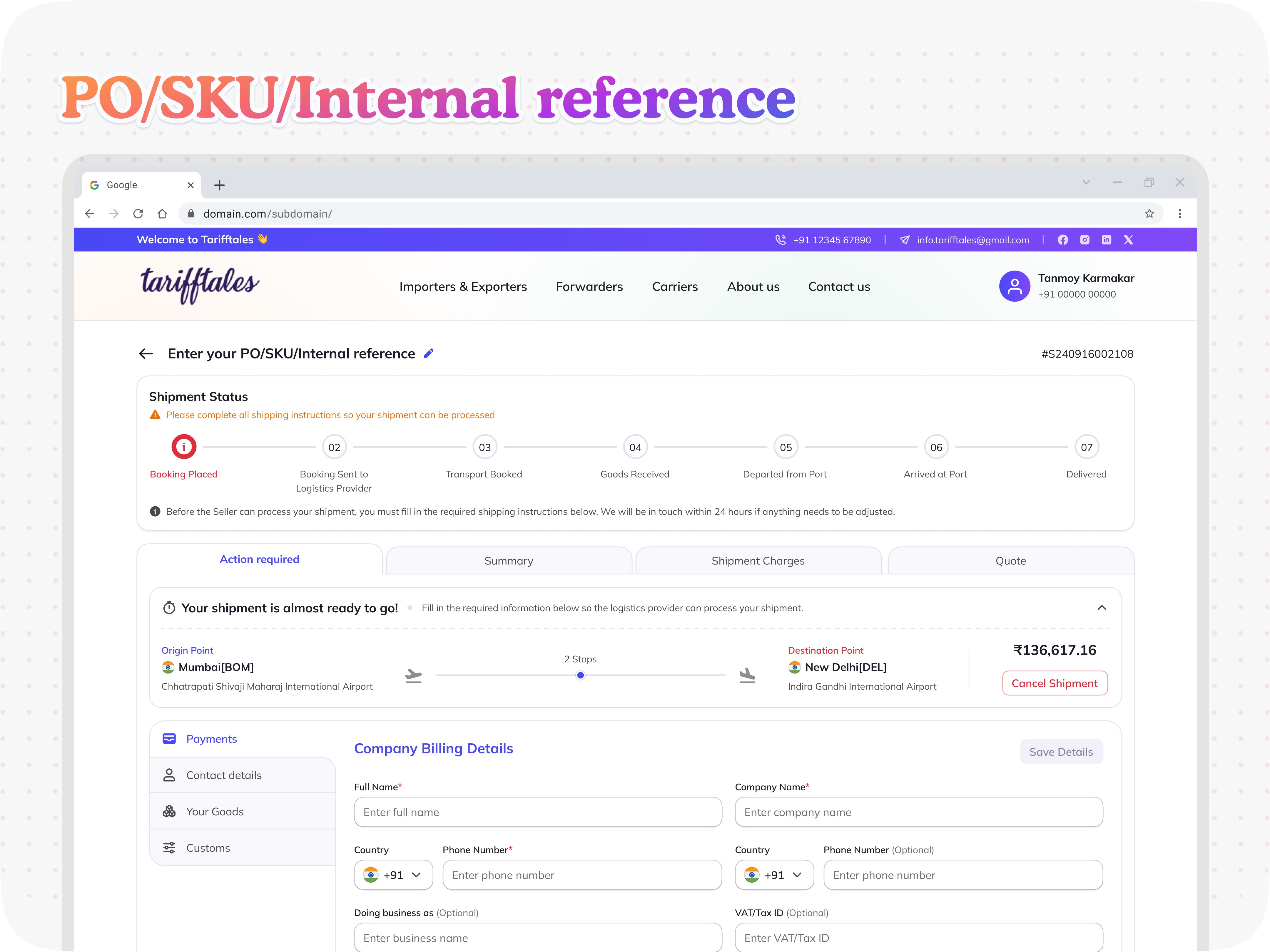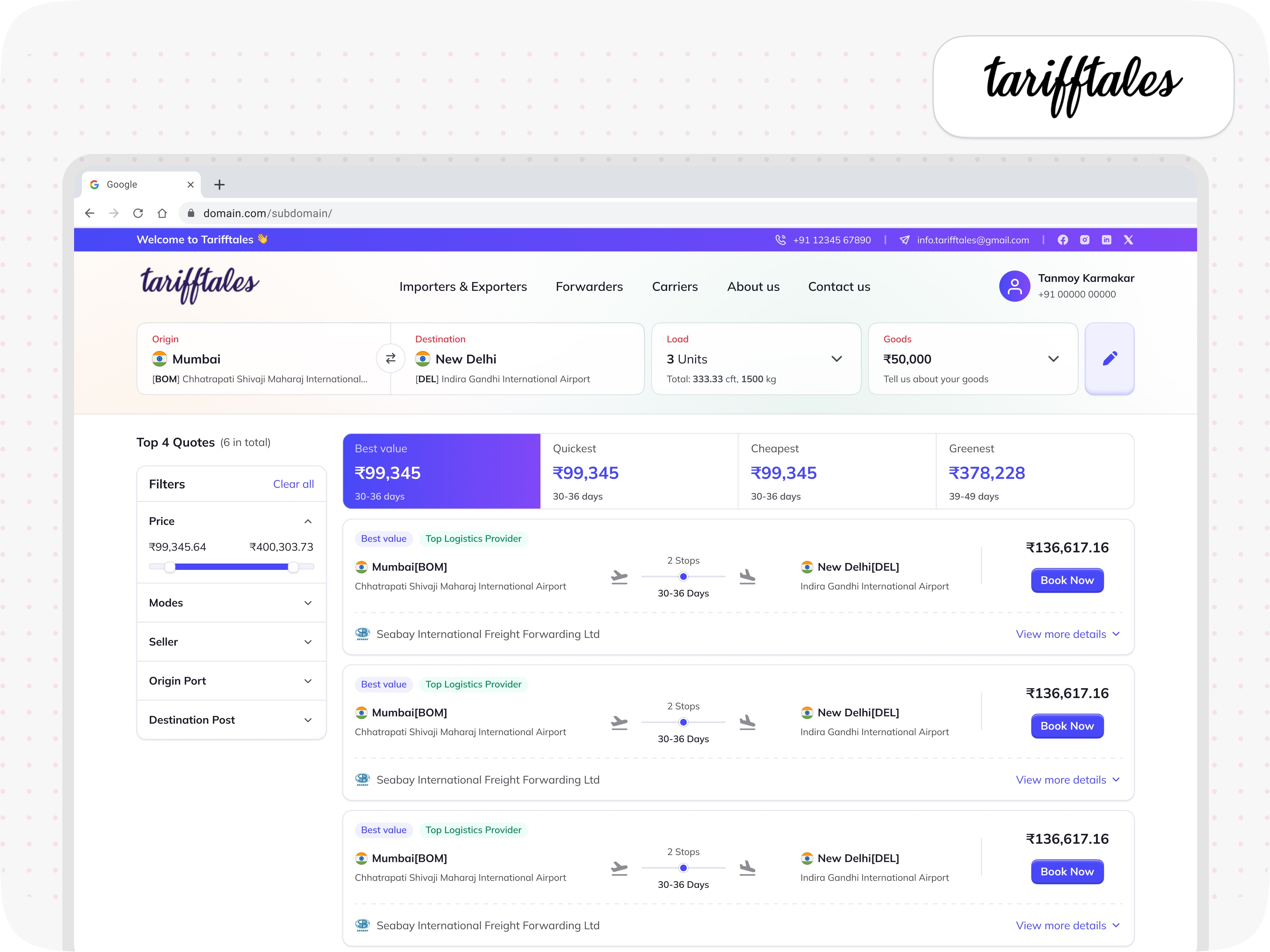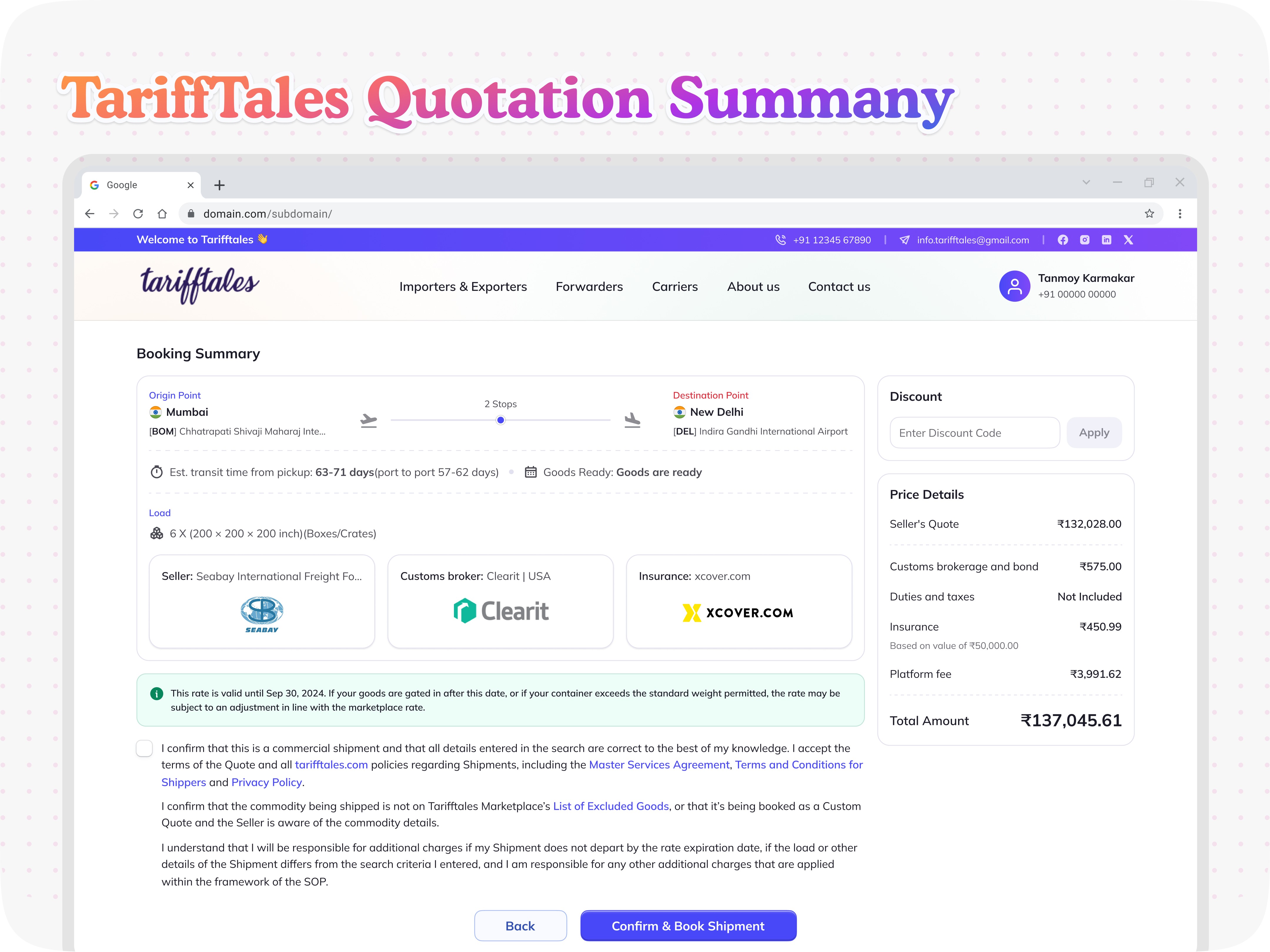 This project reinforced that global trade requires clarity and trust in every interaction. By designing a structured digital freight network, we helped TariffTales create a platform that brings efficiency and transparency to international logistics, empowering businesses to move goods with confidence.